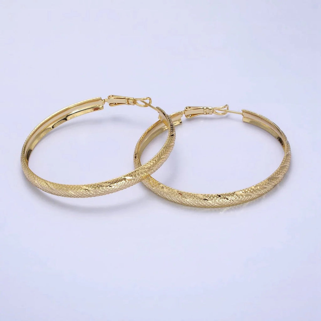 50mm Rhombus Lined Textured Hinge Hoop Earrings ✦ EA-21AE058