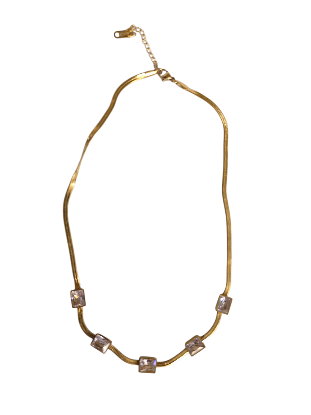 Clear Baguette CZ 3mm Snake Herringbone 16 Inch Geometric Necklace CN-21WA1636
