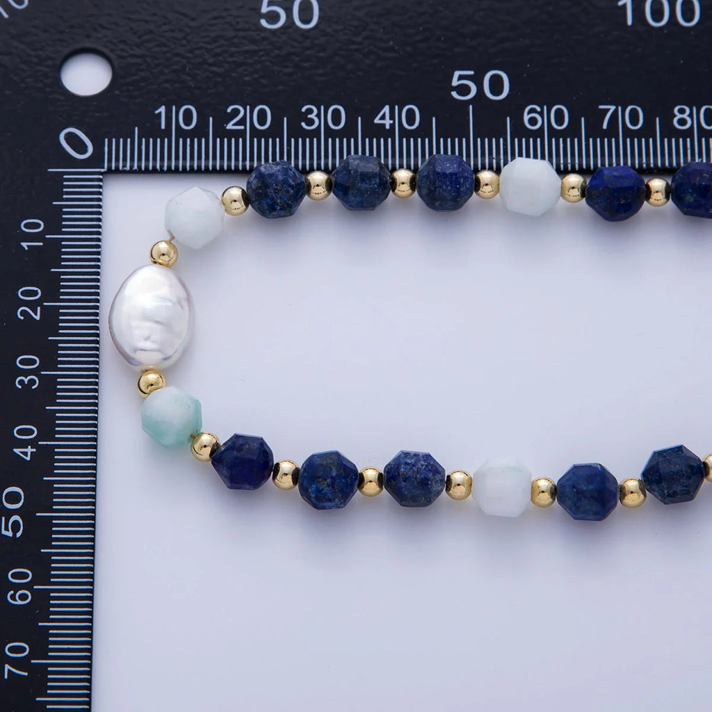 Freshwater Pearl Aquamarine Lapis Lazuli Multifaceted Gemstone 16.5 Inch Necklace CN-21WA3178