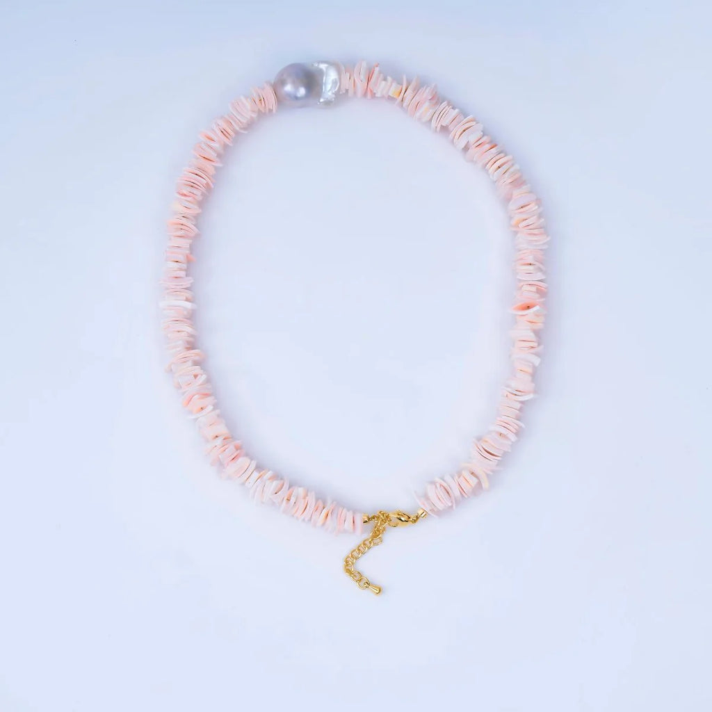 pink Baroque Freshwater Pearl Puka Shell 17 Inch Necklace CN-21WA3248