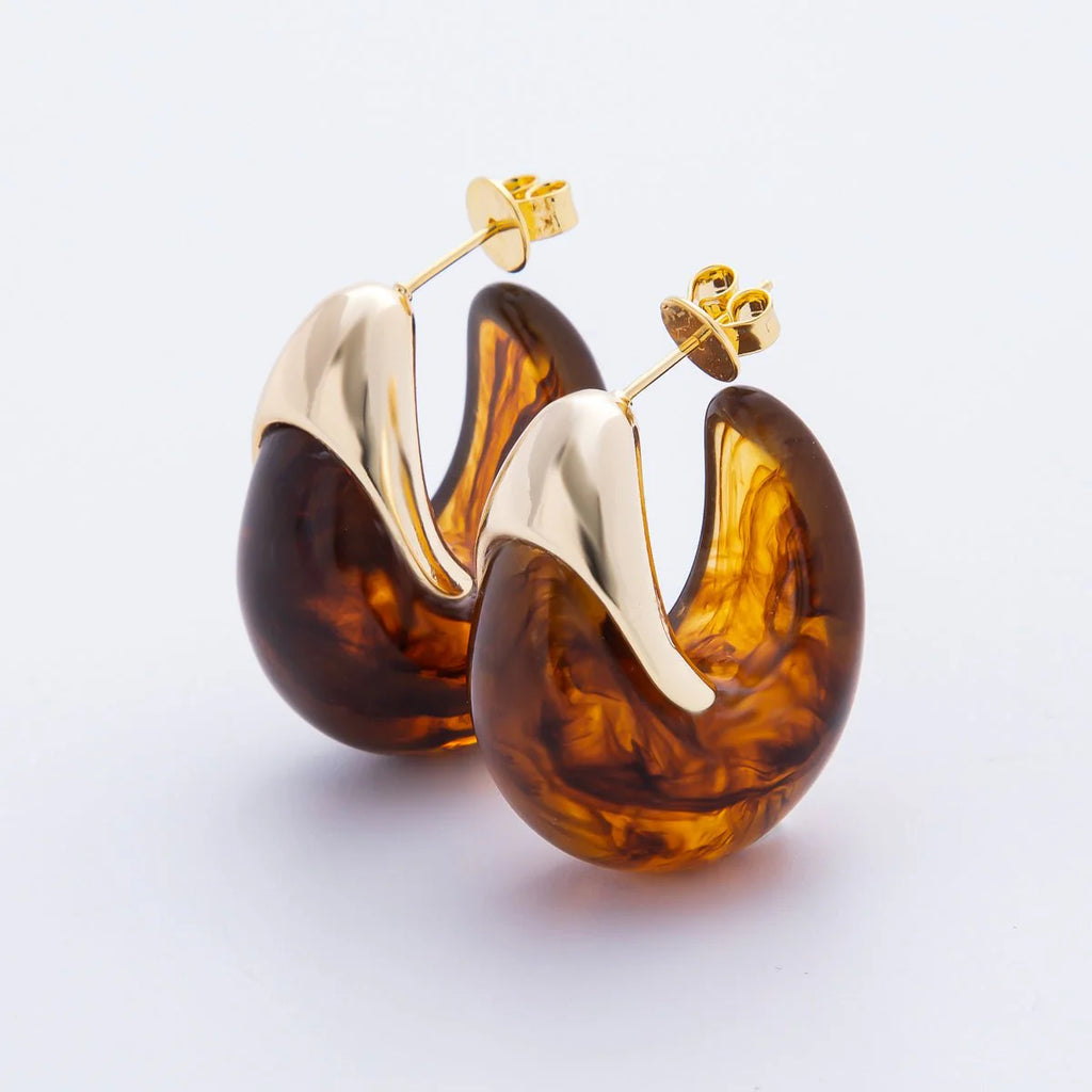 Resin Dreamy Retro J-Shaped Hoop Earrings ✦ EA-21AJ249 EA-21AJ252