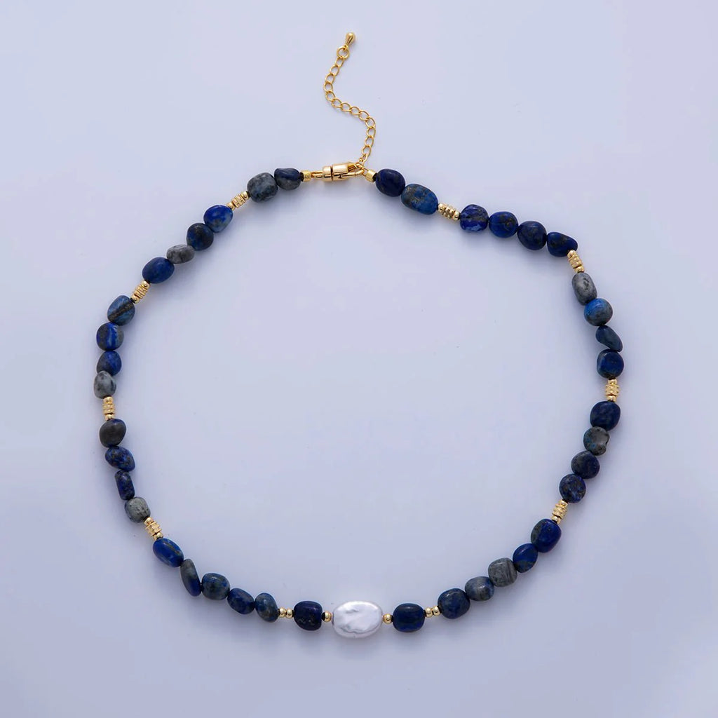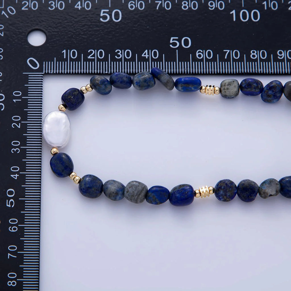 Freshwater Pearl Lapis Lazuli Gemstone 15.8 Inch Necklace CN-21WA3177