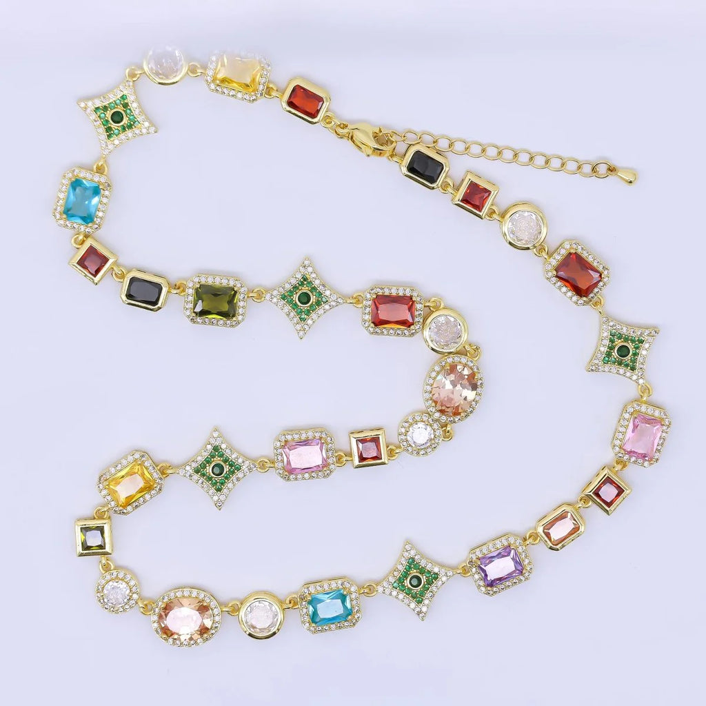 Multicolor Geometric Cluster CZ Micro Paved 18 Inch Necklace ✦ NC-21WA1285