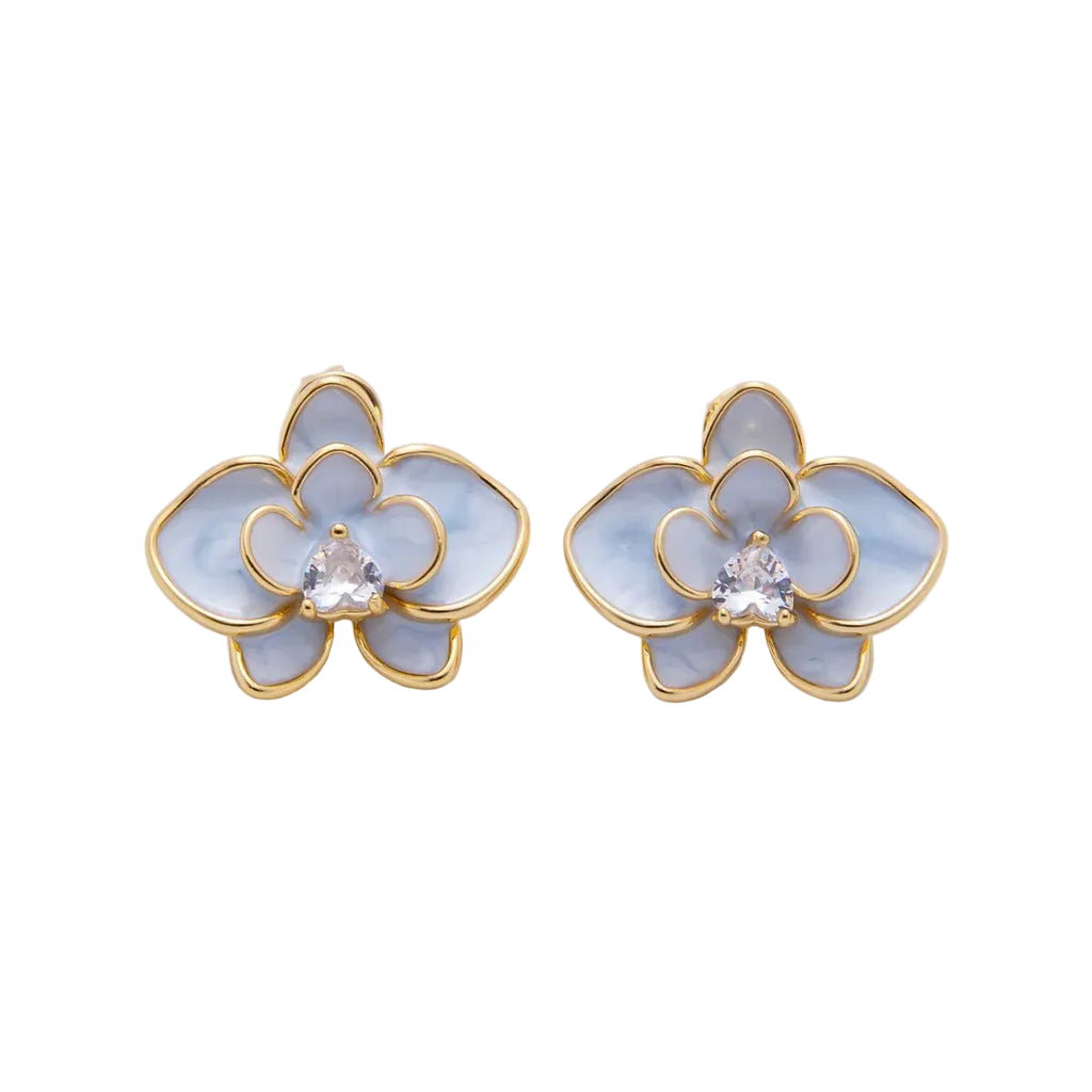 Heart-Shaped CZ Enamel Bloom Orchid Floral Studs Earrings in Blue & Pink EA-21AJ196 EA-21AJ197