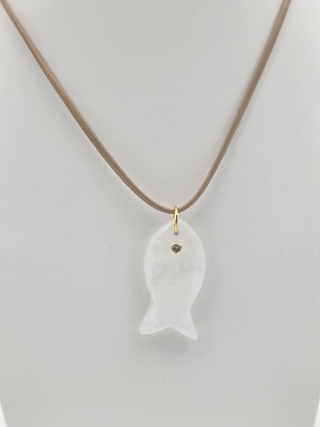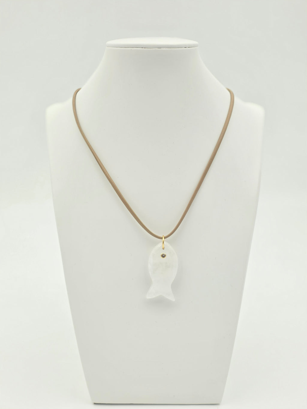 ADJUSTABLE BEIGE CORD NECKLACE WITH WHITE FISH PENDANT ✦ NC-SJ2004