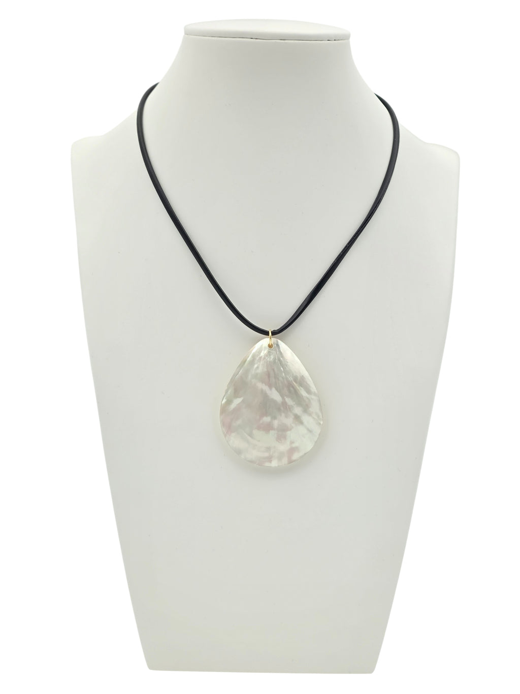 BLACK PLEATHER CORD NECKLACE WITH TEAR DROP DISC PEARL PENDANT NC-SJ2003