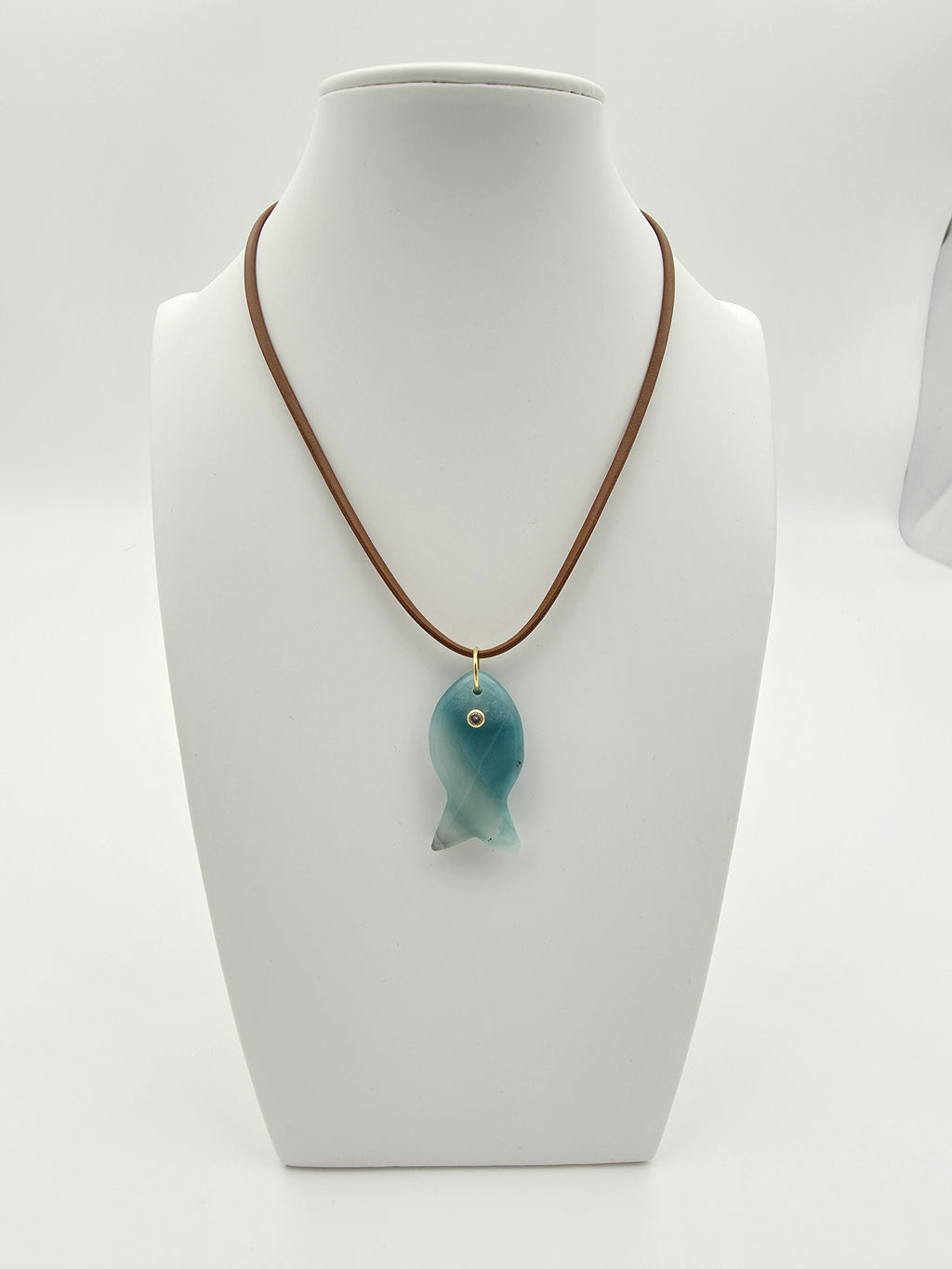 ADJUSTABLE TAN CORD NECKLACE WITH AMAZONITE FISH STONE ✦ NC-SJ2005