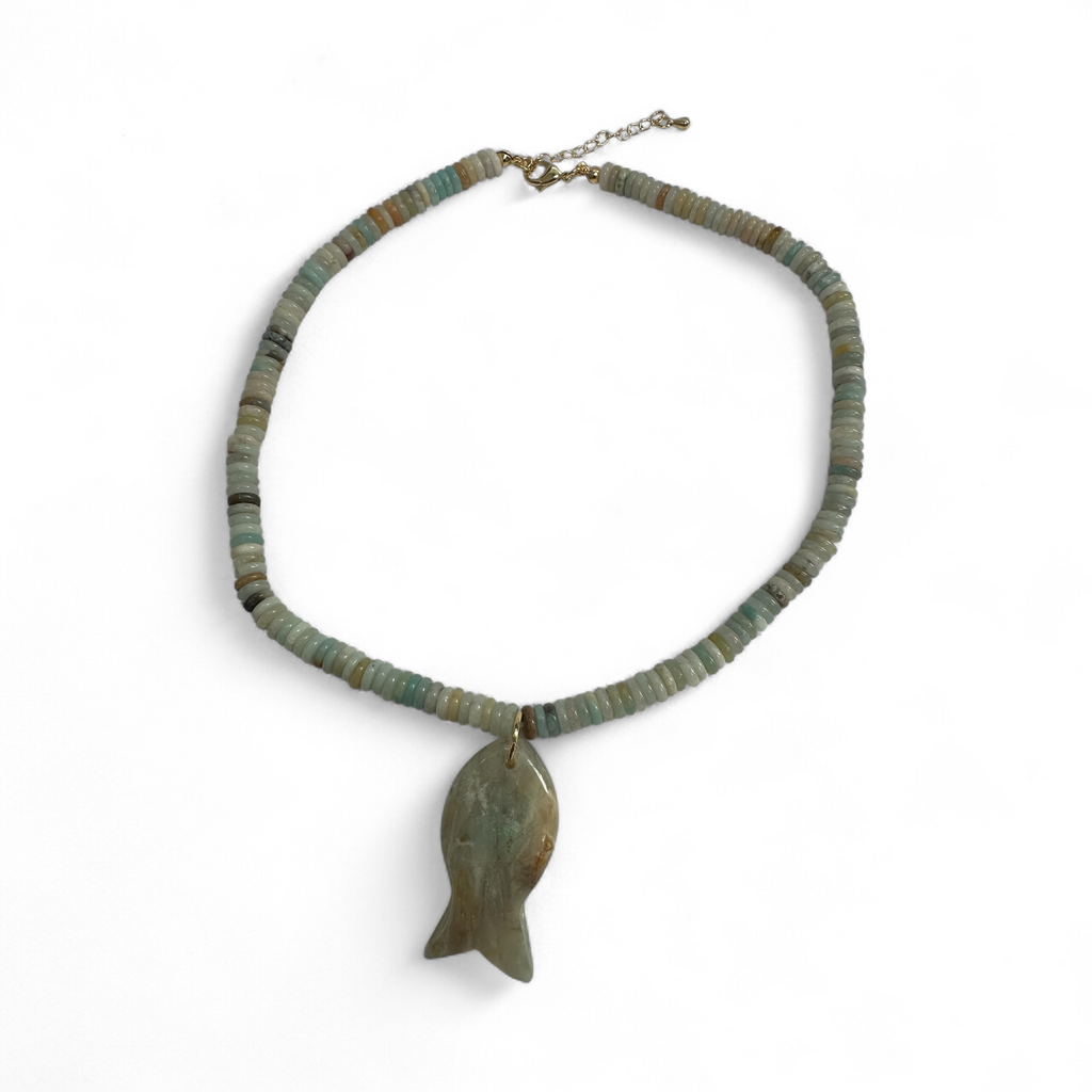Amazonite Rondelle Gemstone Bead 16 Inch Choker AMAZONITE GEMSTONE Fish Charm ✦ NC-SJ2025