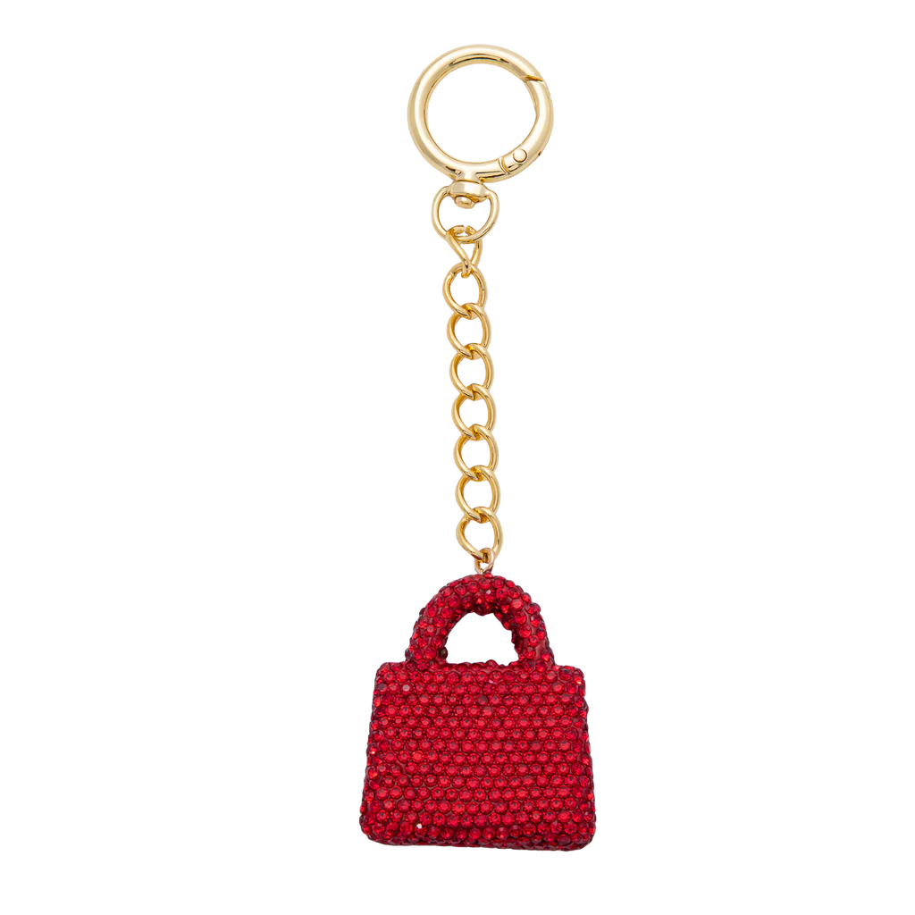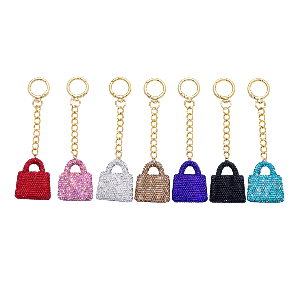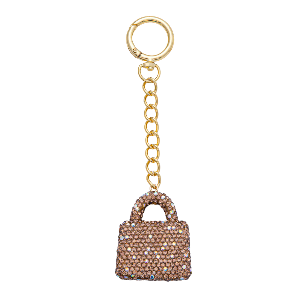 Bedazzled Purse Bag Charm Keychain round gold clip