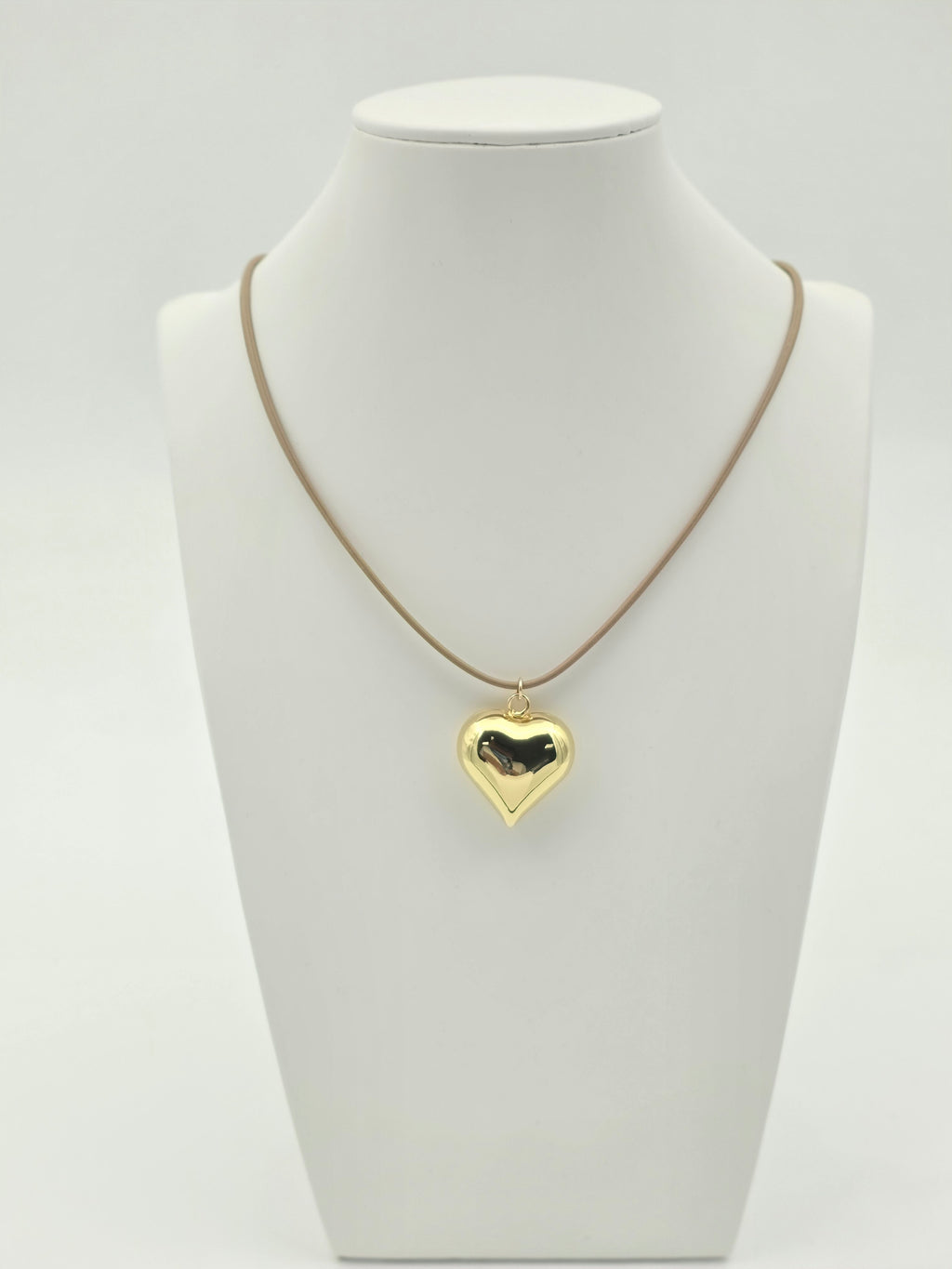 BEIGE ADJUSTABLE LEATHER CORD NECKLACE GOLD HEART ✦ NC-SJ2006