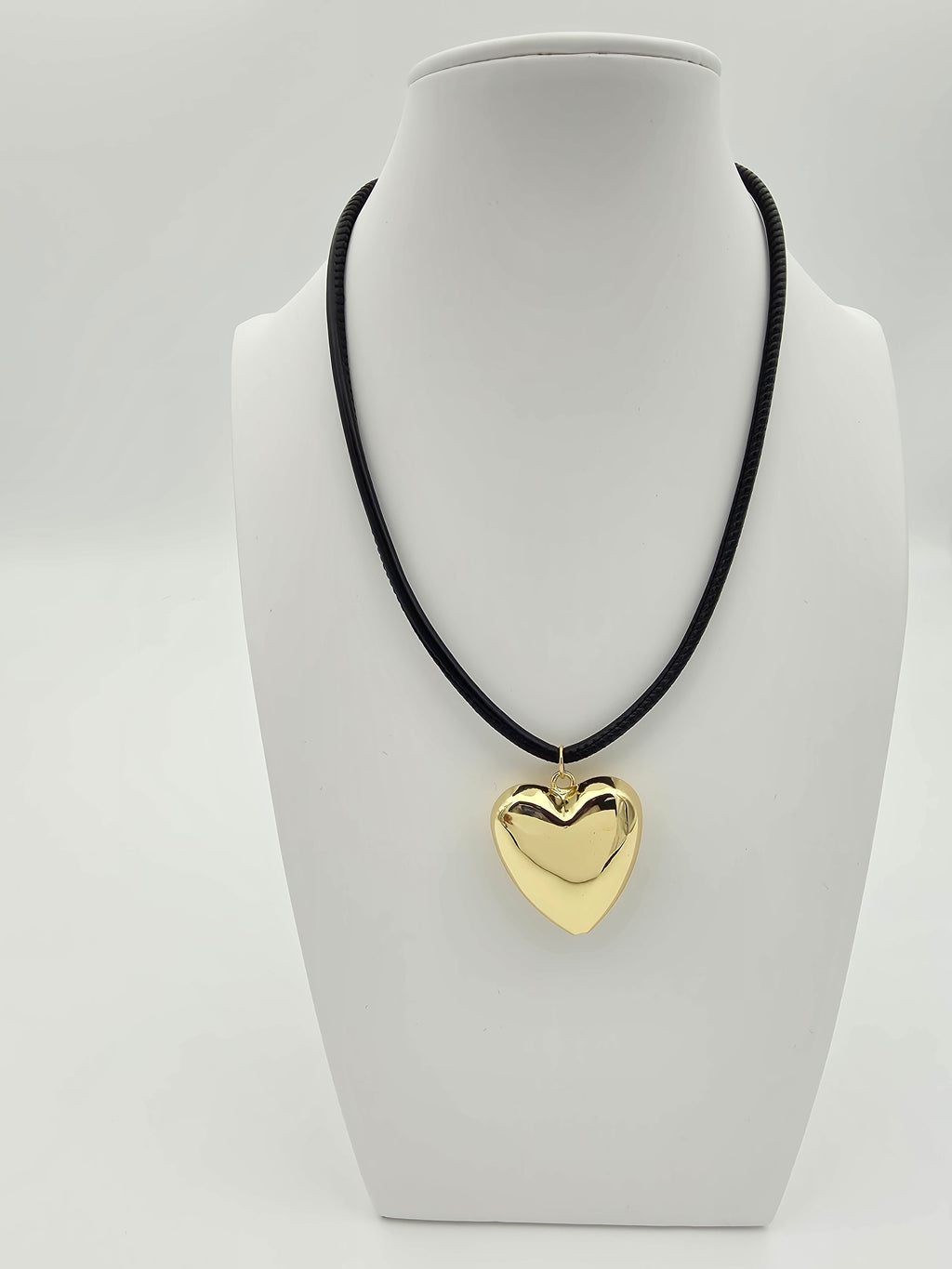 BLACK ADJUSTABLE BAGUETTE CORD NECKLACE WITH GOLD HEART PENDANT ✦ NC-SJ2014