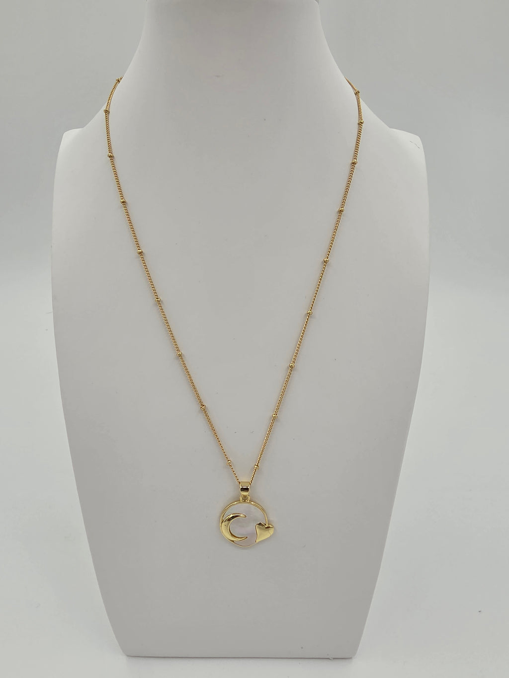 Shell Pearl Celestial Sun and Moon Curb Satellite Chain 18-Inch Necklace ✦ NC-SJ0520