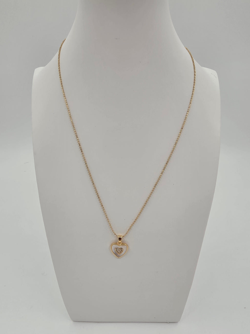 Double Heart Shell Pearl Bead Ball 17.5-inch Necklace ✦ NC-SJ0549