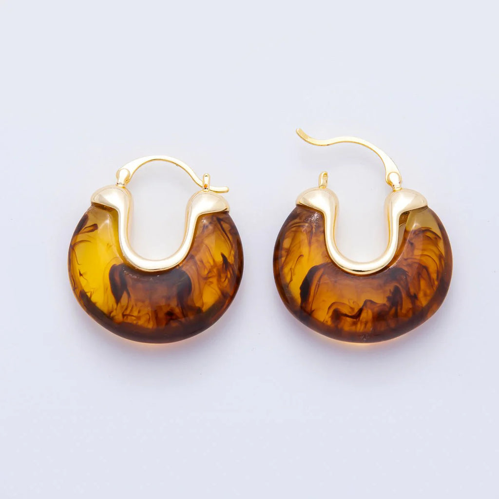 Chunky Gold Resin Tortoise Latch Dome Earrings ✦ EA-21AJ253 EA-21AJ256