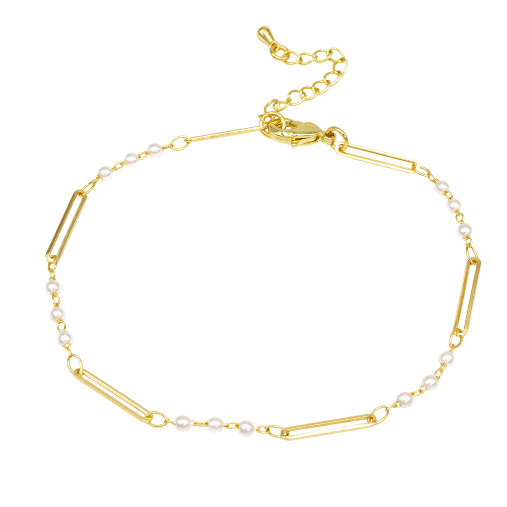 Classic Pearl Paperclip Anklet AN-SJ0094
