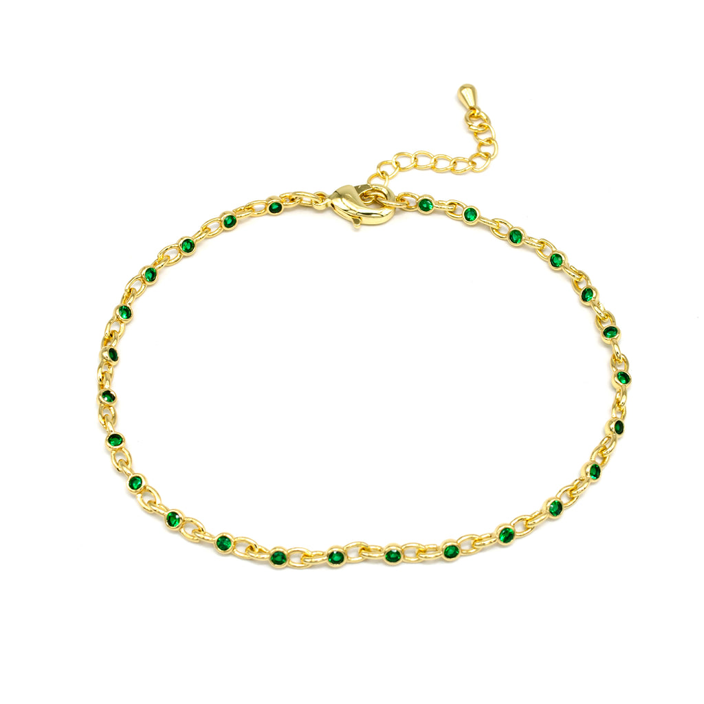 Dainty Gold Emerald Green Cz Anklet AN-SJ0121