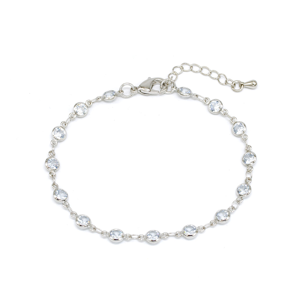 Dainty Silver Clear CZ Link Chain Bracelet ✦ BR-SJ0151