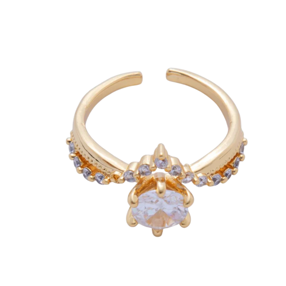 Clear CZ Micro Paved Solitaire Chevron Ring RI-21OA1742