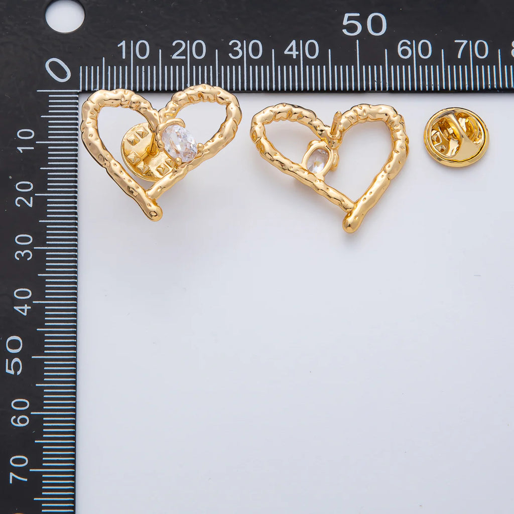 Clear CZ Open Hammered Molten Heart Pin Brooch BH-21Z1475