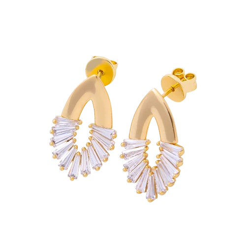 Clear CZ Triangle Baguette Open Navette Geometric Stud Earrings EA-21AJ242