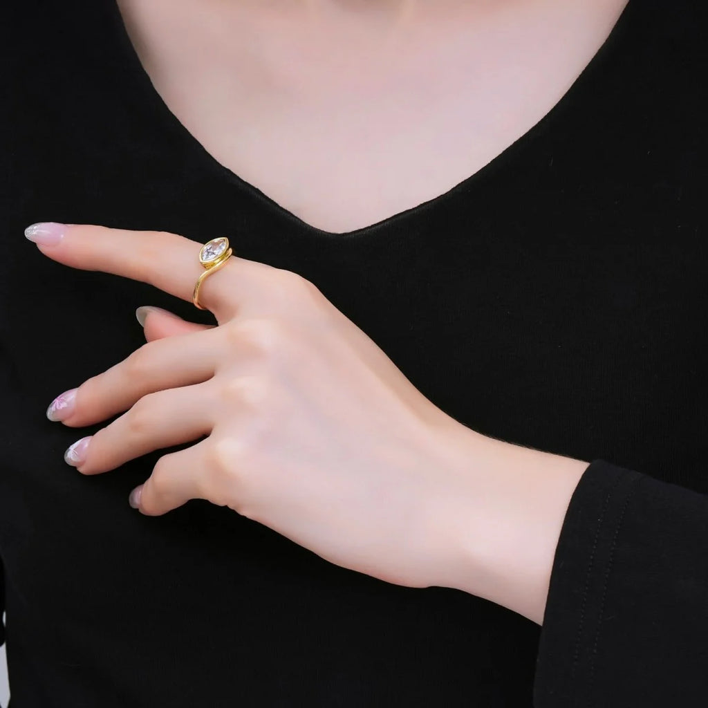 Clear Marquise CZ Eye-Like Solitaire Adjustable Ring RI-21O1456