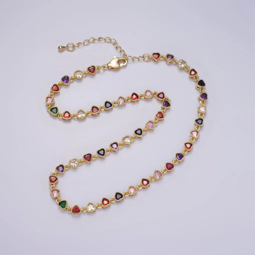 CZ Multicolor Heart Bezel 15 Inch Necklace in Gold & Silver CN-21WA2245 CN-21WA2246