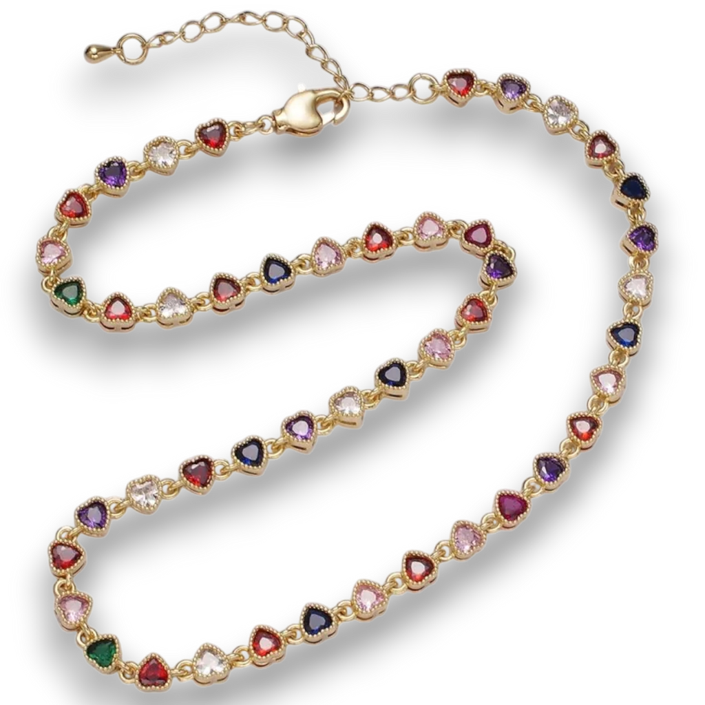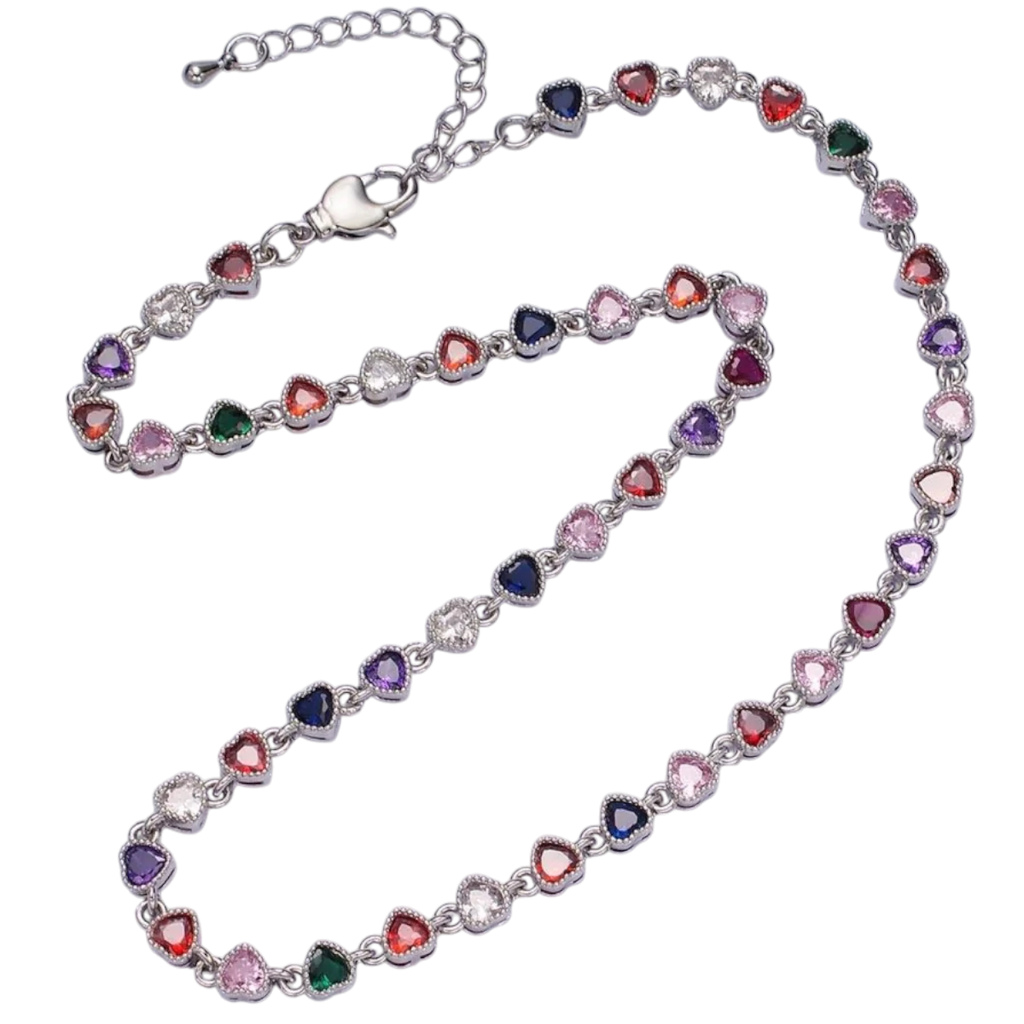 CZ Multicolor Heart Bezel Necklace CN-21WA2245 CN-21WA2244