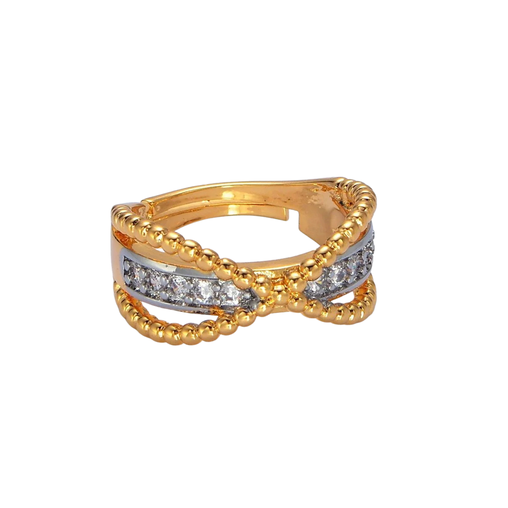 Crossed Double Dainty Mixed Metal Ring RI-21O1425