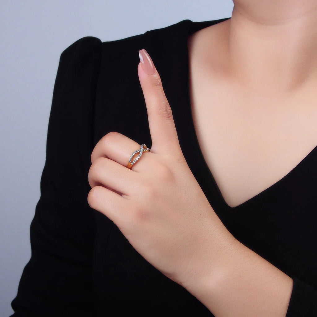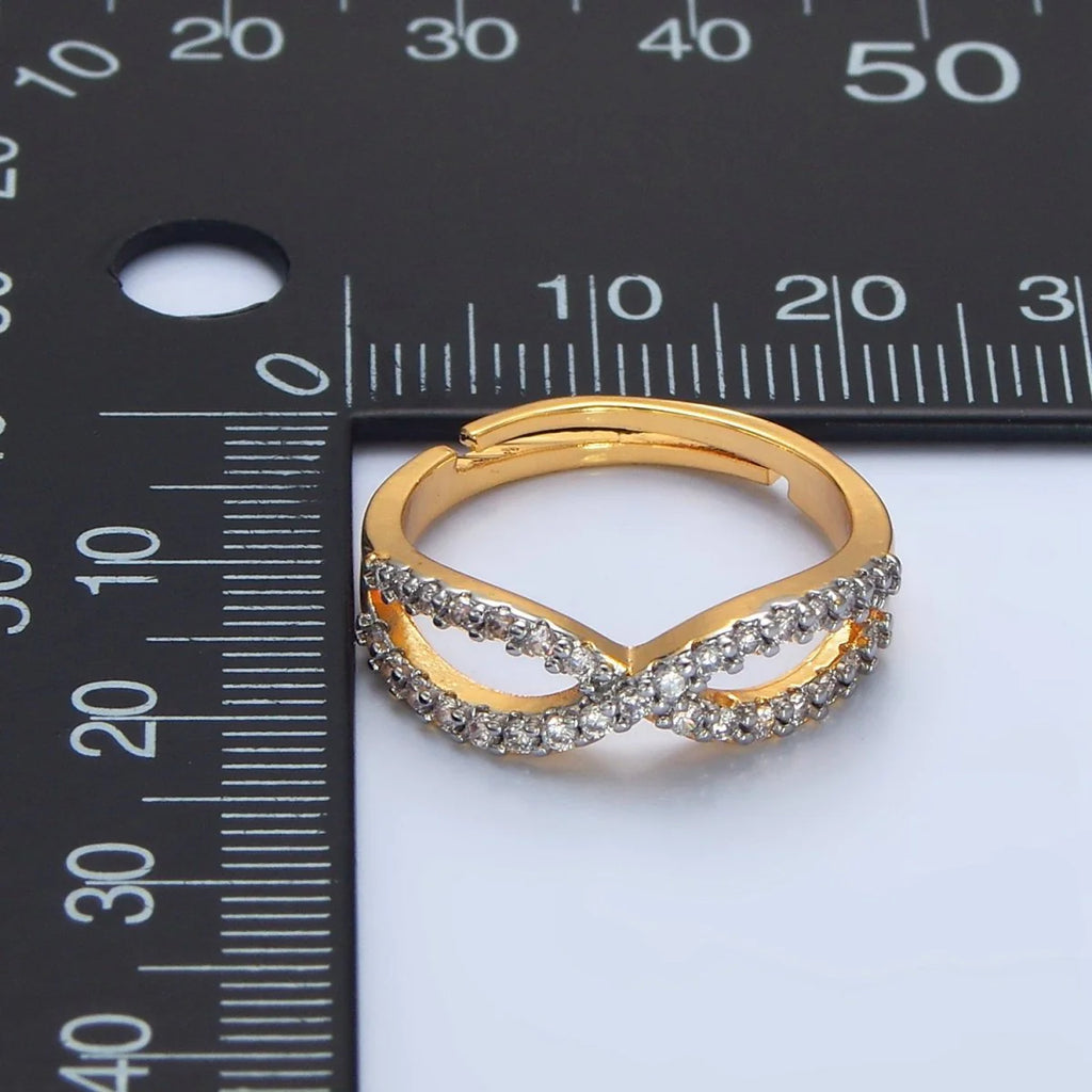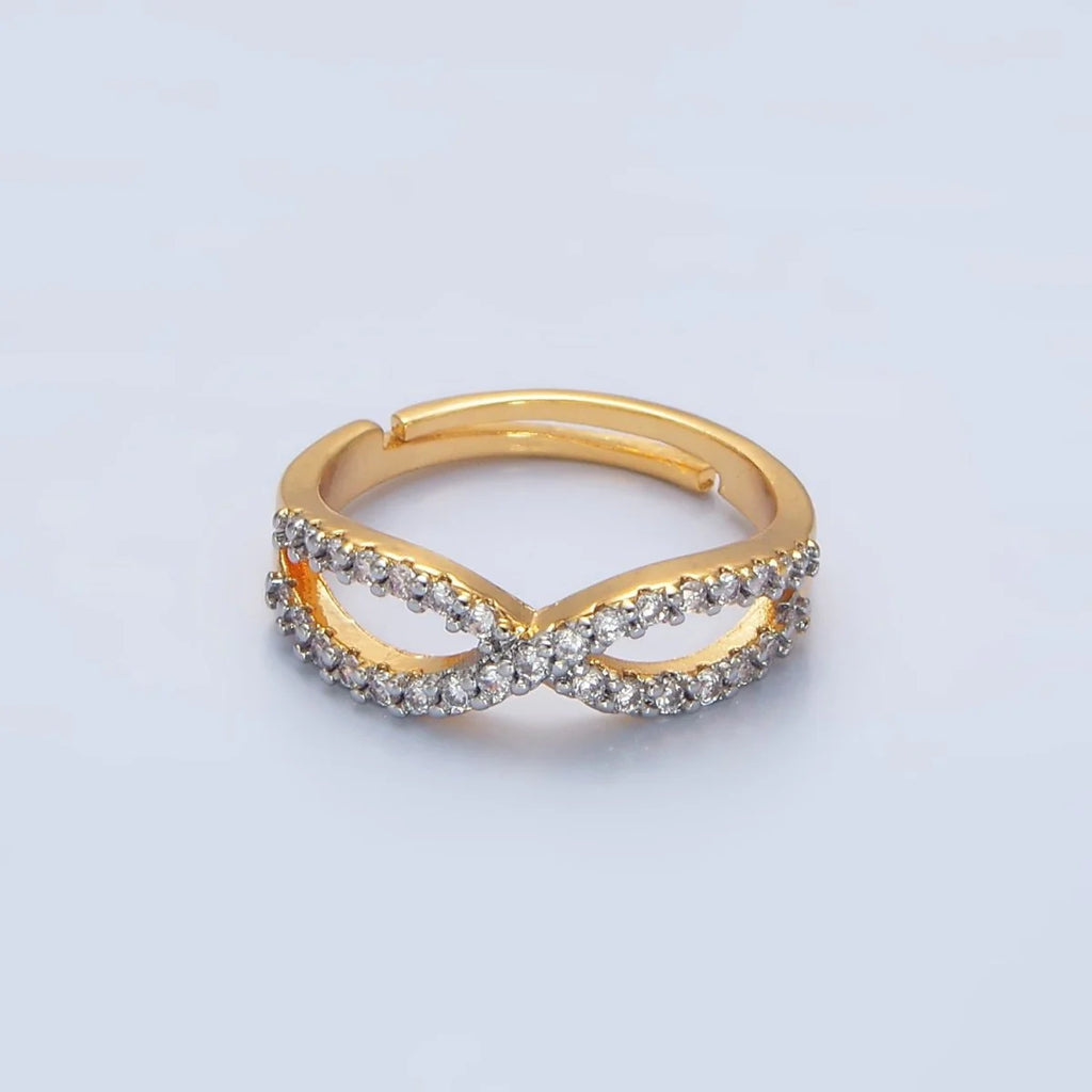 Curved Ribbon Micro Paved CZ Mixed Metal Ring ✦ RI-21O1409