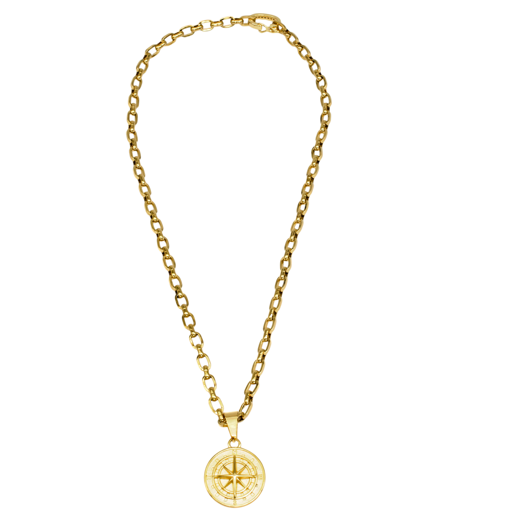 Statement Gold Compass Medallion Necklace NC-SJ0298