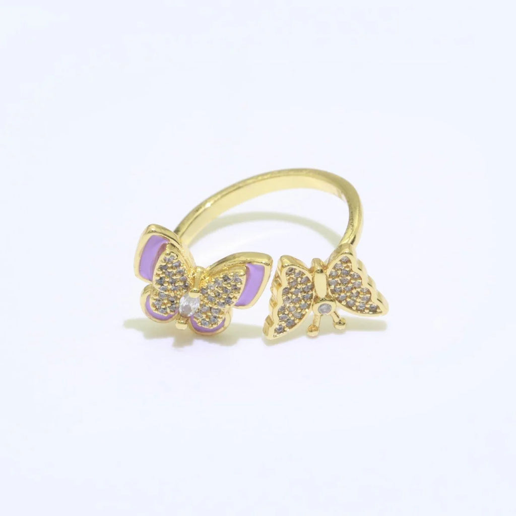 CZ BUTTERFLY ENAMEL GOLD PLATED RING