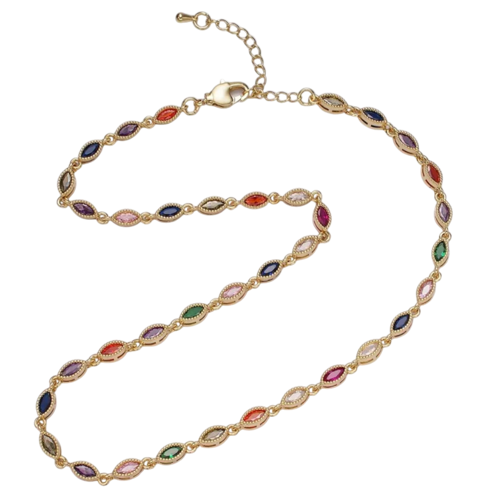 CZ Multicolor Marquise Bezel Necklace NC-21WA2240