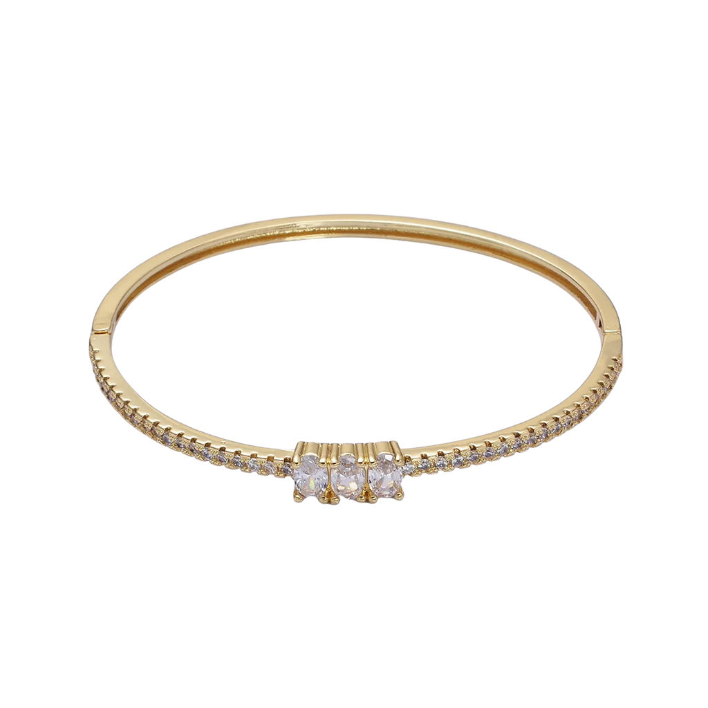 Dainty Gold Bracelet with Triple Clear Cz Stone ✦ BR-21WA1756
