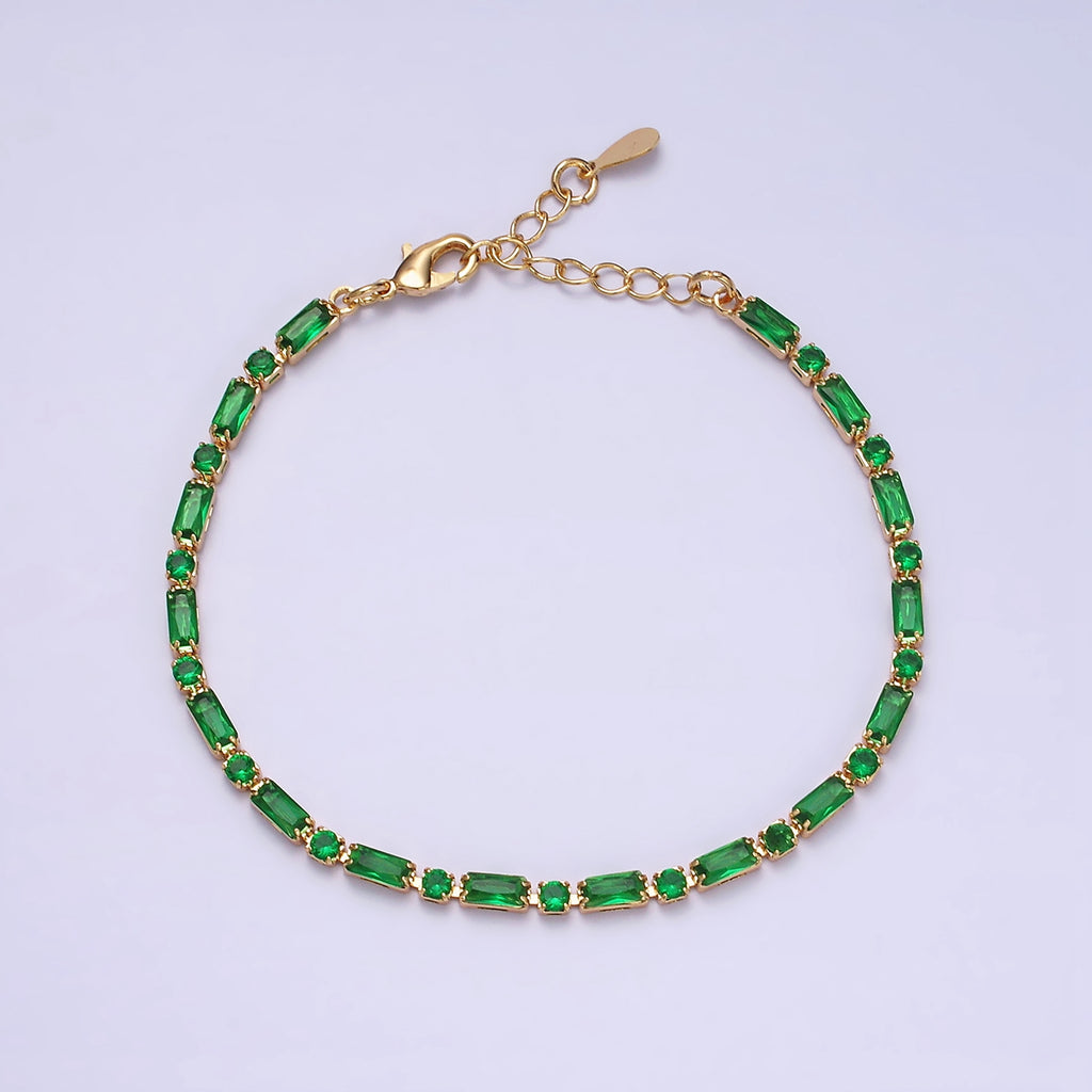 Dainty Emerald Round Baguette Tennis Bracelet ✦ BR-21WA1828