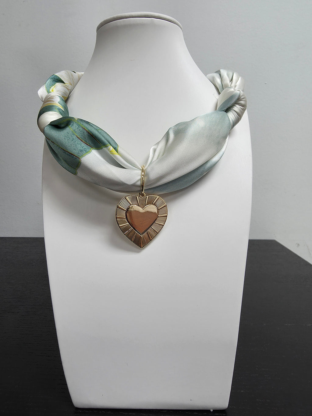 Design Scarf Necklace with Gold Heart Charm ✦ NC-SJ0461