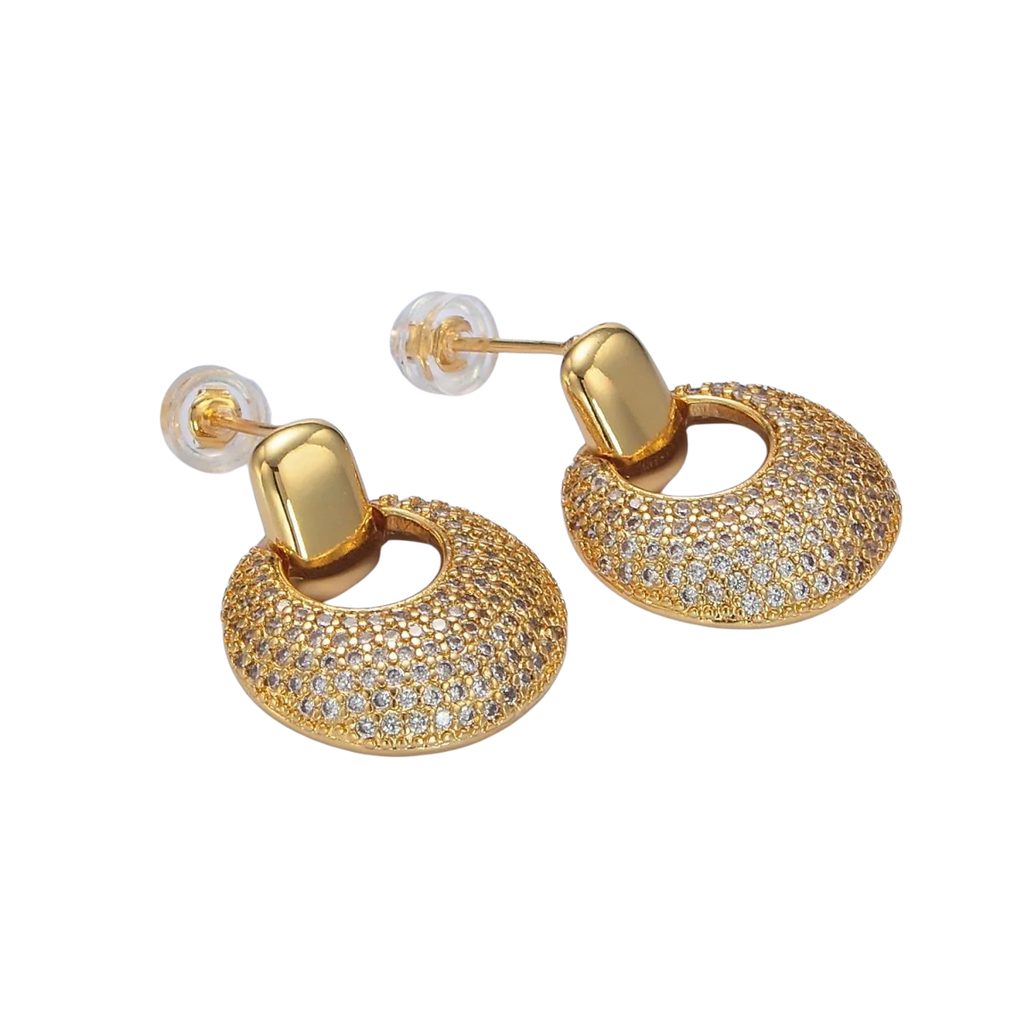 Dome Micro Paved CZ Door Knocker Drop Earring EA-21P113