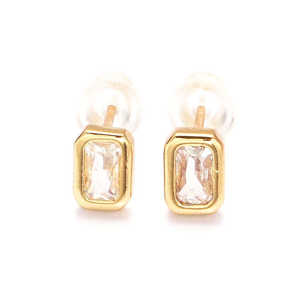 Clear Multifaceted Baguette CZ Bezel Stud Earrings ✦ EA-21AD449