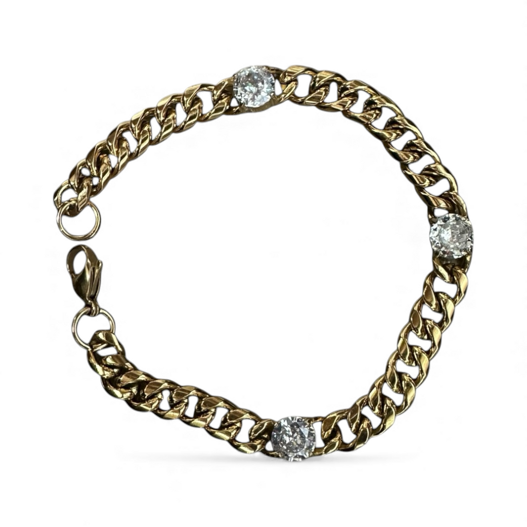 Gold bracelet chain 3 round cz diamonds BR-2021