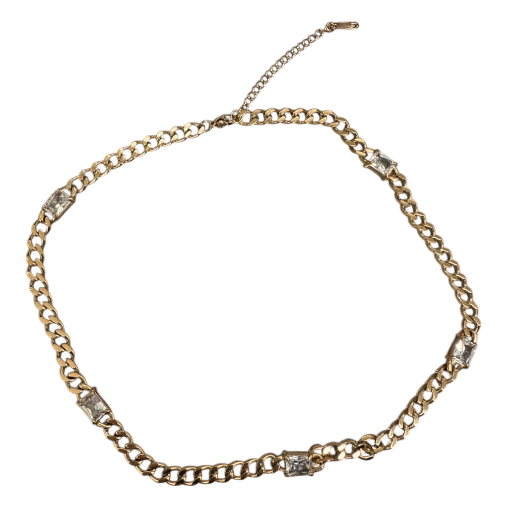 Gold chain necklace with rectangle cz diamonds NC-2076