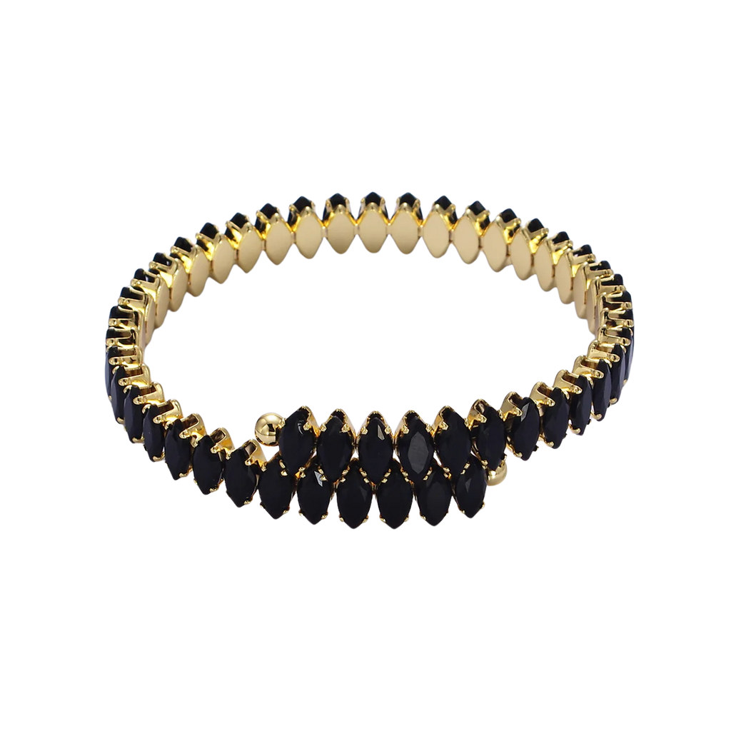 Gold Clear, Black Marquise CZ Tennis Chain Bangle Cuff Bracelet ✦ BR-21WA2537 BR-21WA2538