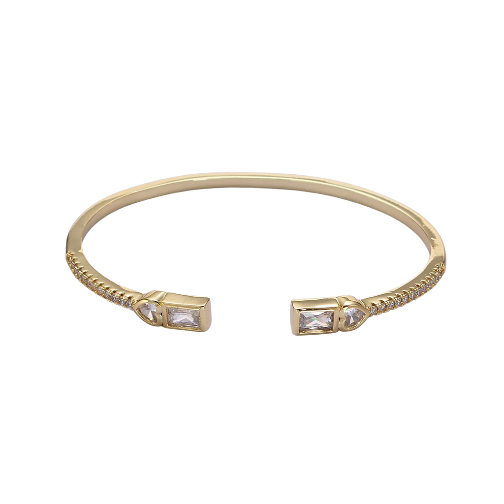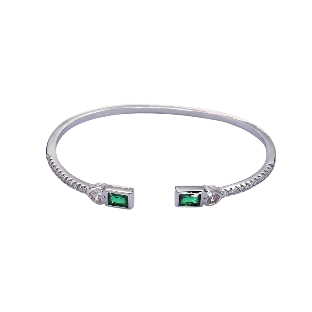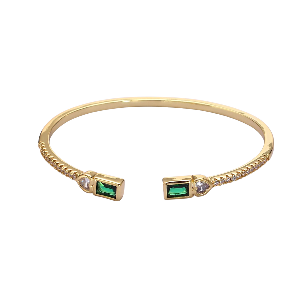 Gold Clear, Green, Pink Baguette Heart CZ Micro Paved Cuff Bracelet in Gold & Silver ✦ BR-21WA2123 BR-21WA2124 BR-21WA2126