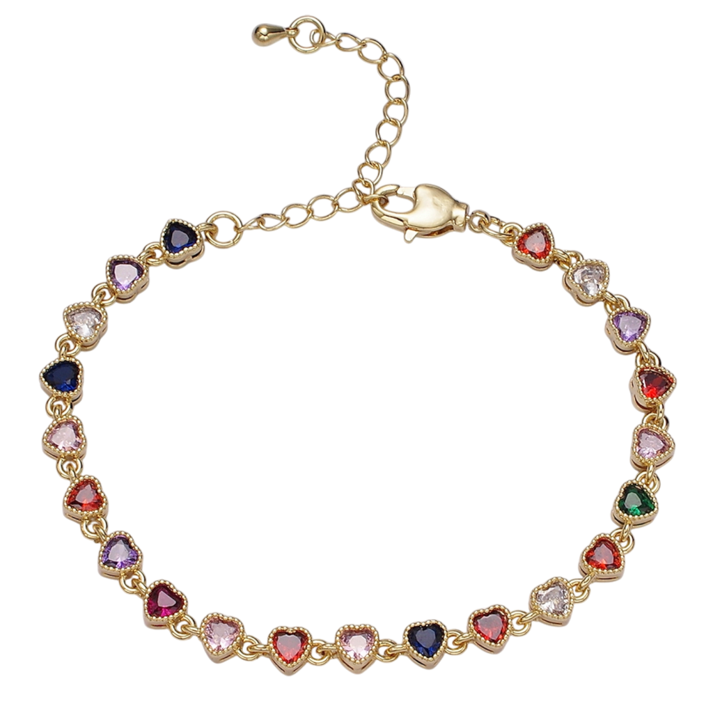Gold CZ Multicolor Heart Bezel 7 Inch Bracelet BR-21WA2230