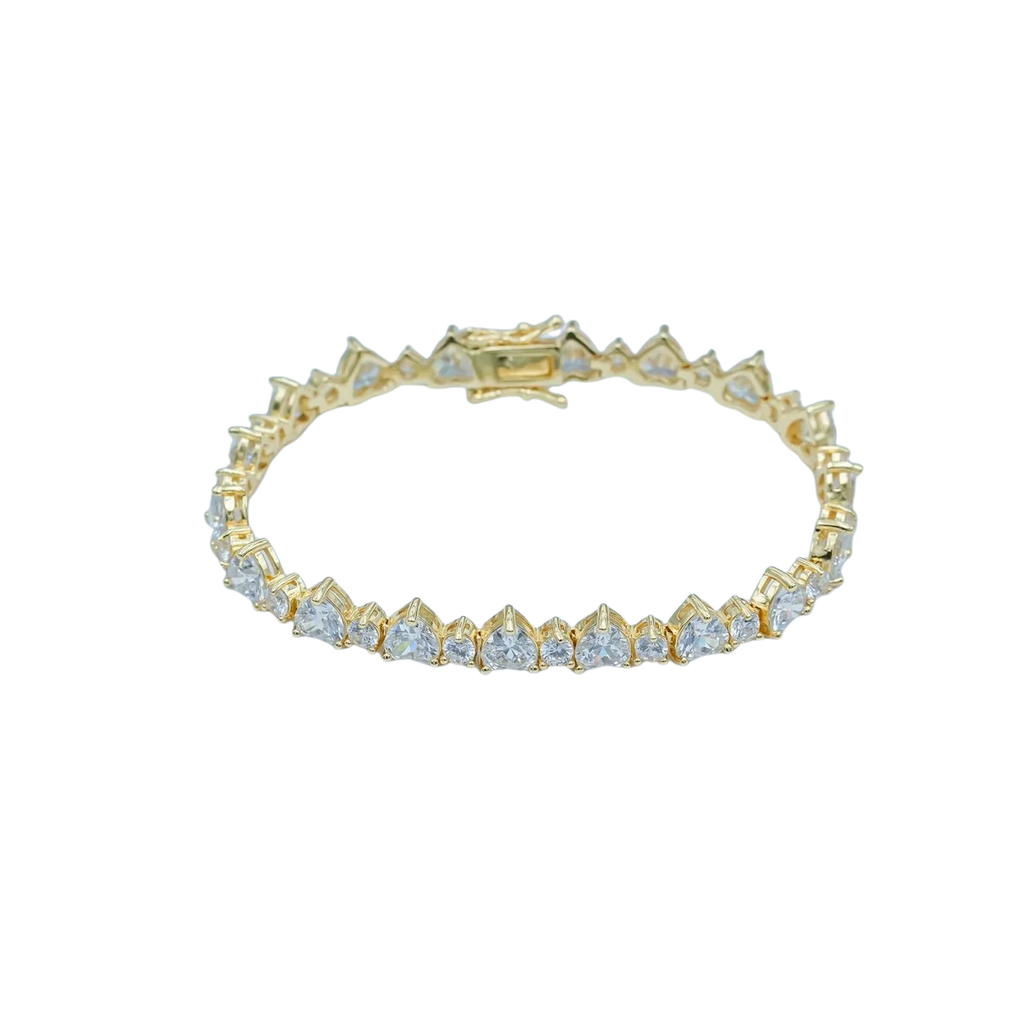 Gold Heart CZ Tennis Chain 7 Inch Bracelet