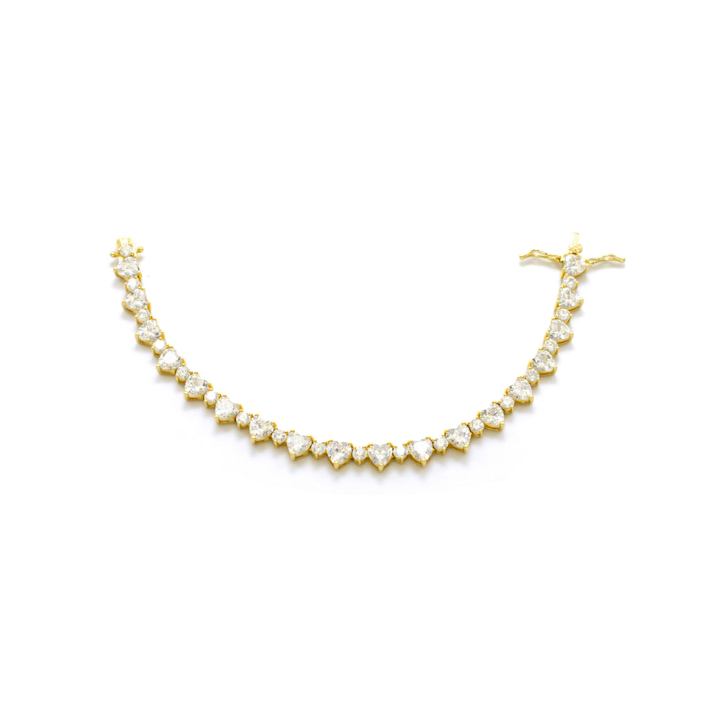 Gold Heart CZ Tennis Chain 7 Inch Bracelet ✦ CN-21WA2859