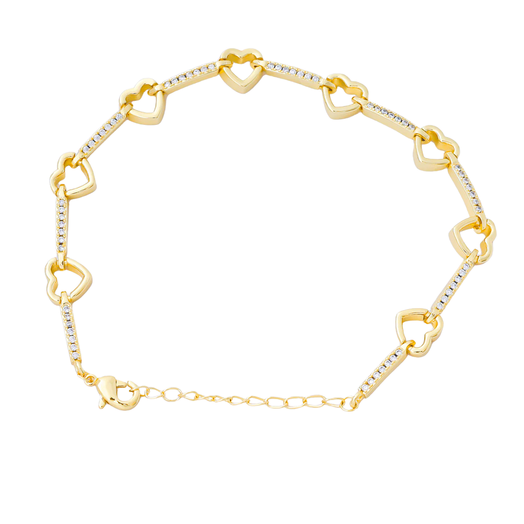Gold Heart Diamond CZ Bar Adjustable Beracelet