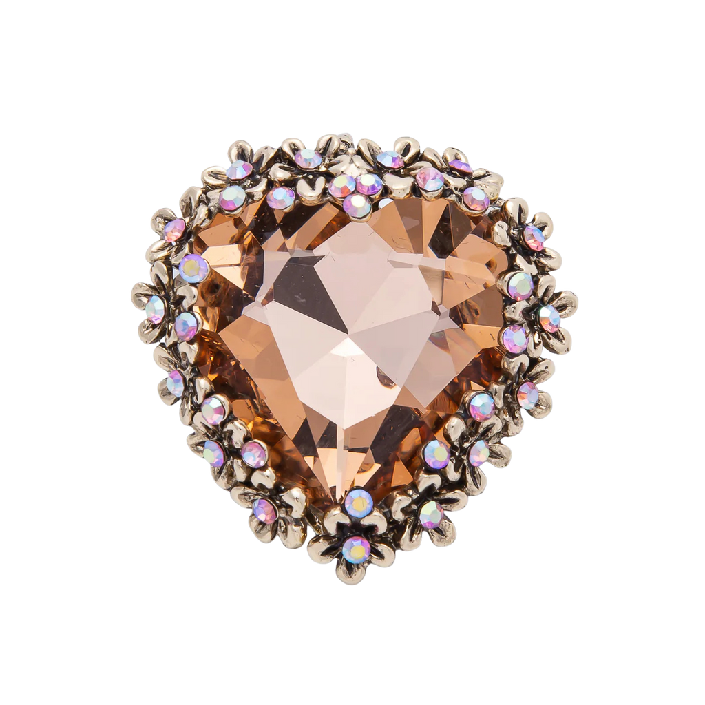 Gold Jumbo Heart Rhinestone Diamond CZ Brooch Pin