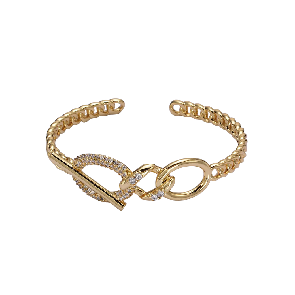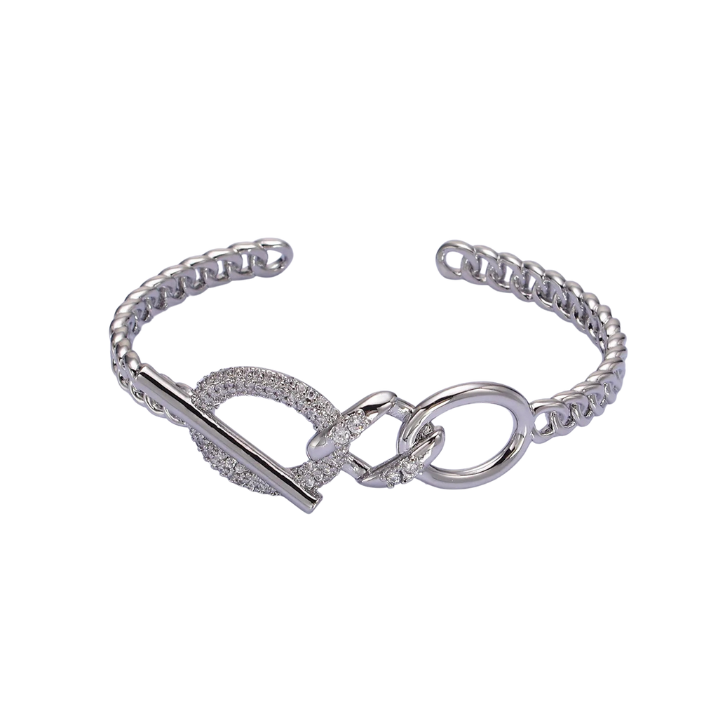 Gold Micro Paved CZ Oval Bar Curb Cuff Bangle Bracelet in Gold & Silver ✦ BR-21WA1972 BR-21WA1973