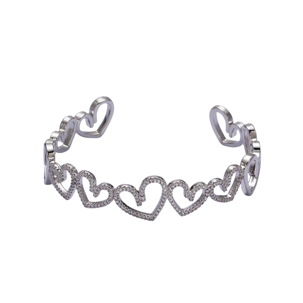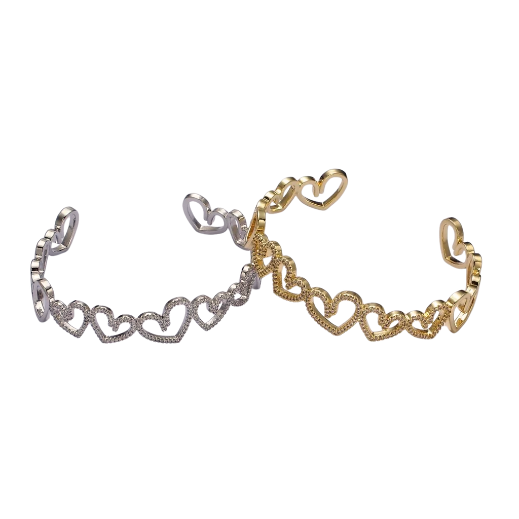 Gold Open Heart Micro Paved CZ Cuff Bangle Bracelet in Silver & Gold ✦ BR-21WA1920 BR-21WA1921