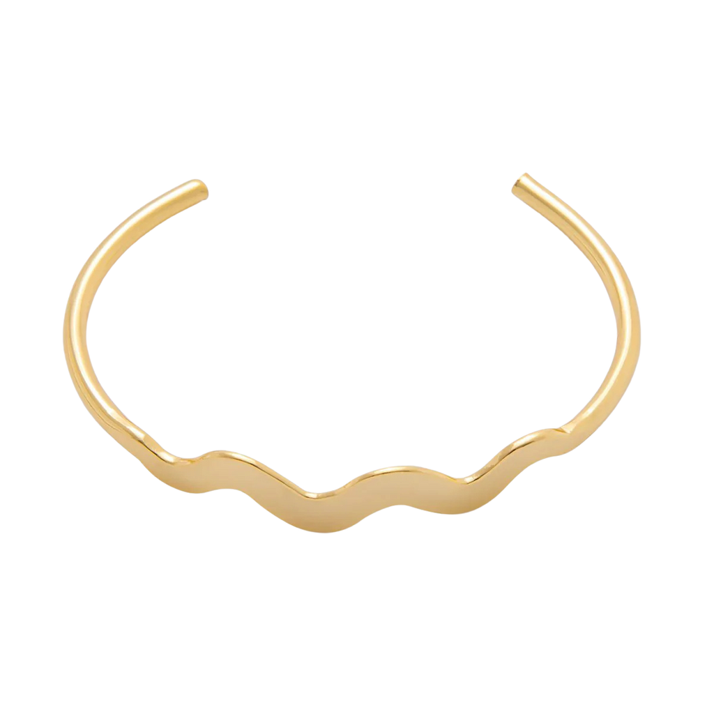 Gold Stainless Steel Triple Wave Round Cuff Bangle Bracelet ✦ BA-21WA3466