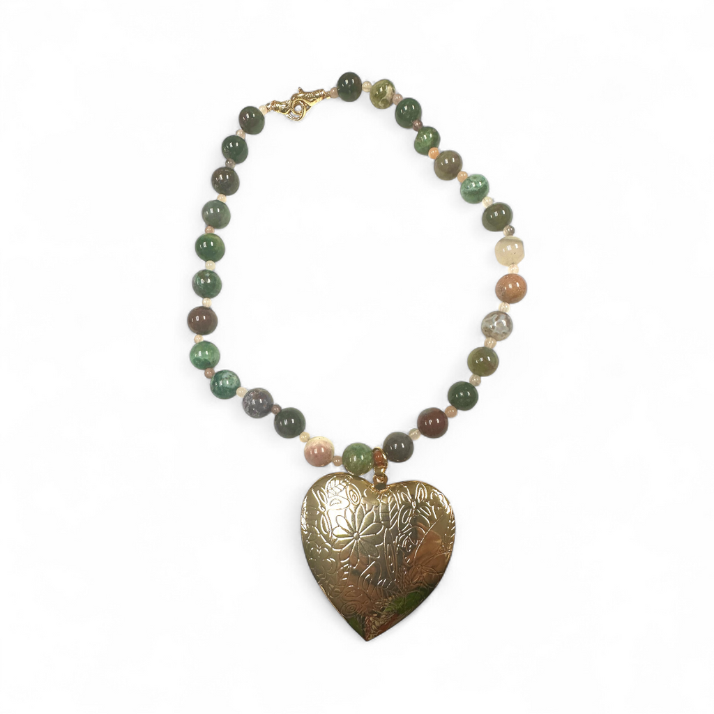 INDIA AGATE GEM NECKLACE WITH BIG HEART LOCKET NC-SJ2042